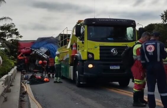 O acidente aconteceu por volta das 2 horas da manhã de hoje envolvendo várias equipes da Ecovias e Corpo de Bombeiros. O tenente Favalessa que estava de plantão e chegou ao local poucos minutos após a batida.