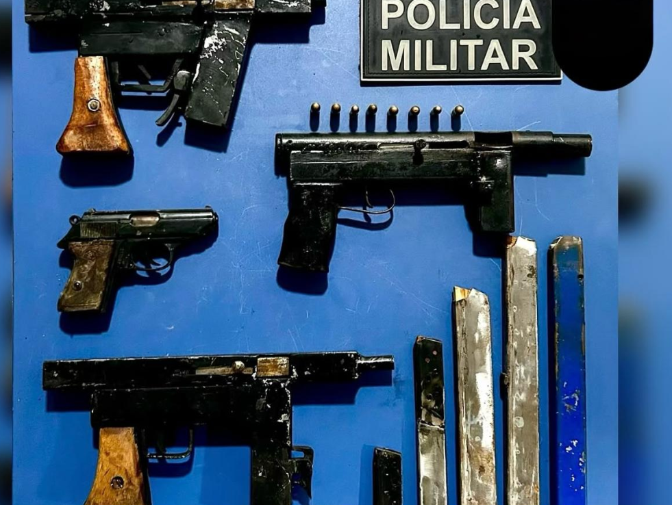 Na tarde desta quarta-feira (15), por volta das 15h30, a equipe do Grupo de Apoio (GA) do 2º CPOR, do 13º Batalhão da Polícia Militar, fez uma grande apreensão de armas de fogo no distrito de Santa Maria, em São Mateus.