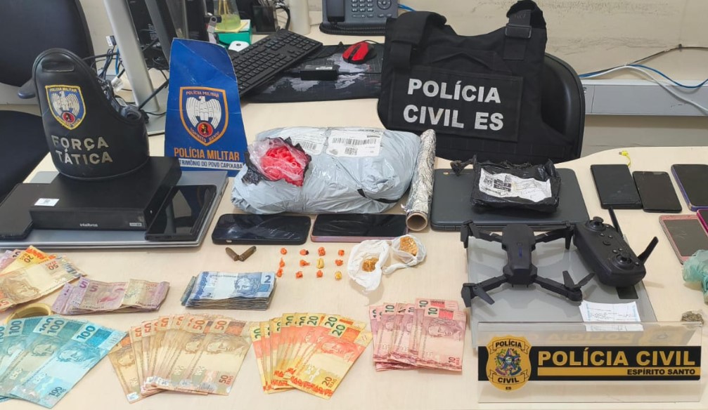 Foram apreendidos crack, maconha, munições de calibres distintos, cerca de R$ 2.800 em dinheiro, celulares, um drone, uma balança de precisão, microtubos plásticos usados para fracionamento de drogas e cadernos de contabilidade do tráfico. Cinco suspeitos foram presos em flagrante — entre eles um cidadão espanhol com função estratégica no grupo e um sexto foi detido por mandado de prisão em aberto.