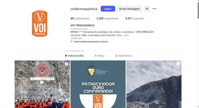 Em um rede social da empresa informa a prestação de serviços na área de rompimento ecológico de rochas e concretos sem vibração de uso livre não controlado pelo Exército.
