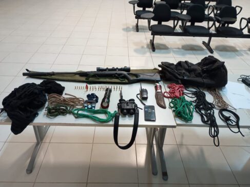Durante a ação, os policiais apreenderam um rifle calibre .22, munições, silenciador, luneta e outros equipamentos normalmente usados na caça ilegal. No veículo conduzido pelo suspeito, foram encontrados materiais que reforçam a prática do crime. O automóvel foi apreendido e encaminhado a um pátio credenciado.