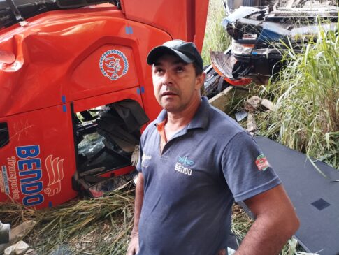 Segundo Marcondes, que da cidade de Itamira, em Pernambuco disse que em menos de 60 dias é o segundo acidente que acontece com ele e agradeceu a Deus pelo livramento. Mas quem vê as imagens pensa logo no pior, a carga de perfilados se deslocou, mas não atingiu o cavalo mecânico ou cabine do caminhão.