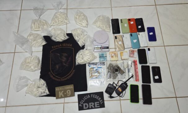 Durante o cumprimento dos mandados, foram apreendidos cerca de 300 pinos de cocaína, 13 munições calibre .38, porções de maconha, 15 aparelhos celulares, dinheiro em espécie e uma balança de precisão.
