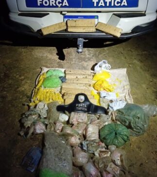 Após denúncias anônimas a Força Tática da Polícia Militar de Jaguaré descobriu no meio de uma mata grande quantidade de drogas que estavam enterradas em recipientes plásticos em pontos diferentes, no bairro Seac.