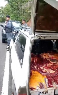 No município de Fundão, policiais civis e militares prenderam dois homens, de 24 e 67 anos, flagrados transportando 390 quilos de carne de cavalo.