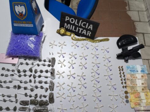 Dentro da casa, os militares encontraram 187 pinos de cocaína, 13 pedras de crack, 64 buchas e nove pedaços grandes de maconha, além de centenas de pinos vazios usados para embalar a droga.