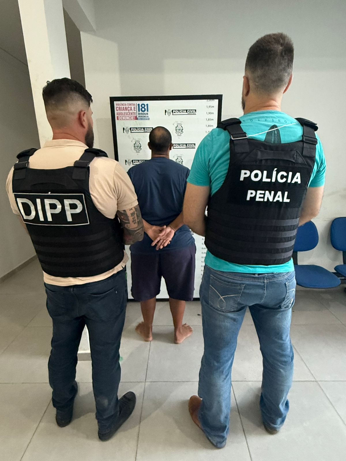 Com base nas informações repassadas, equipes da Divisão de Inteligência realizaram diligências no endereço indicado e conseguiram confirmar a presença do foragido no interior do imóvel. O local foi cercado e, após procedimento de verbalização, Carlos Magno dos Santos se entregou voluntariamente, sem oferecer resistência.