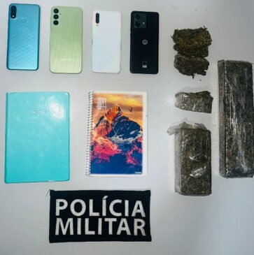 Com o grupo, a PM apreendeu mais de 1 quilo de maconha, celulares, cadernos de anotações do tráfico e diversos itens de vestuário usados nas ações criminosas.