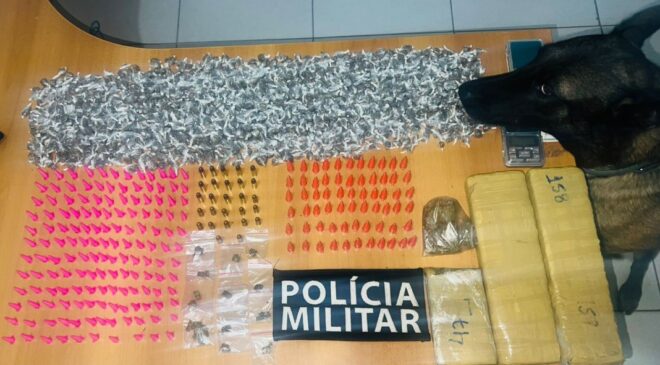 No dia anterior (10), durante patrulhamento tático no bairro Cohab, uma equipe da Força Tática avistou um veículo que tentou fugir ao notar a presença policial. Os ocupantes jogaram uma sacola pela janela contendo 250 gramas de maconha, mas foram alcançados. Três suspeitos, sendo um adulto e dois menores, foram conduzidos à delegacia.