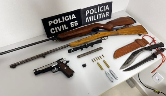 Após intensas diligências e com base em uma denúncia anônima, os agentes conseguiram localizar David. No local, foi encontrado um verdadeiro arsenal de armas, entre eles: