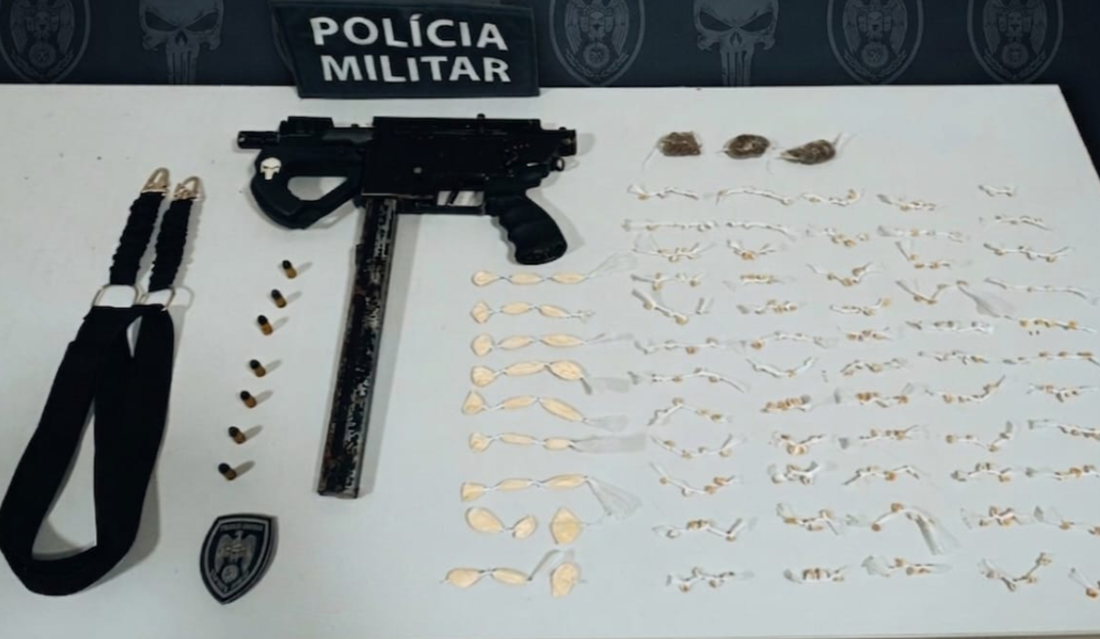 Durante a abordagem, os militares encontraram com os suspeitos 226 pedras de crack e 27 papelotes de cocaína. Em continuidade às buscas, foi localizada uma bolsa escondida em um barco, contendo uma submetralhadora de fabricação semi-industrial, um carregador alongado com sete munições calibre 9mm e ainda três buchas de maconha.